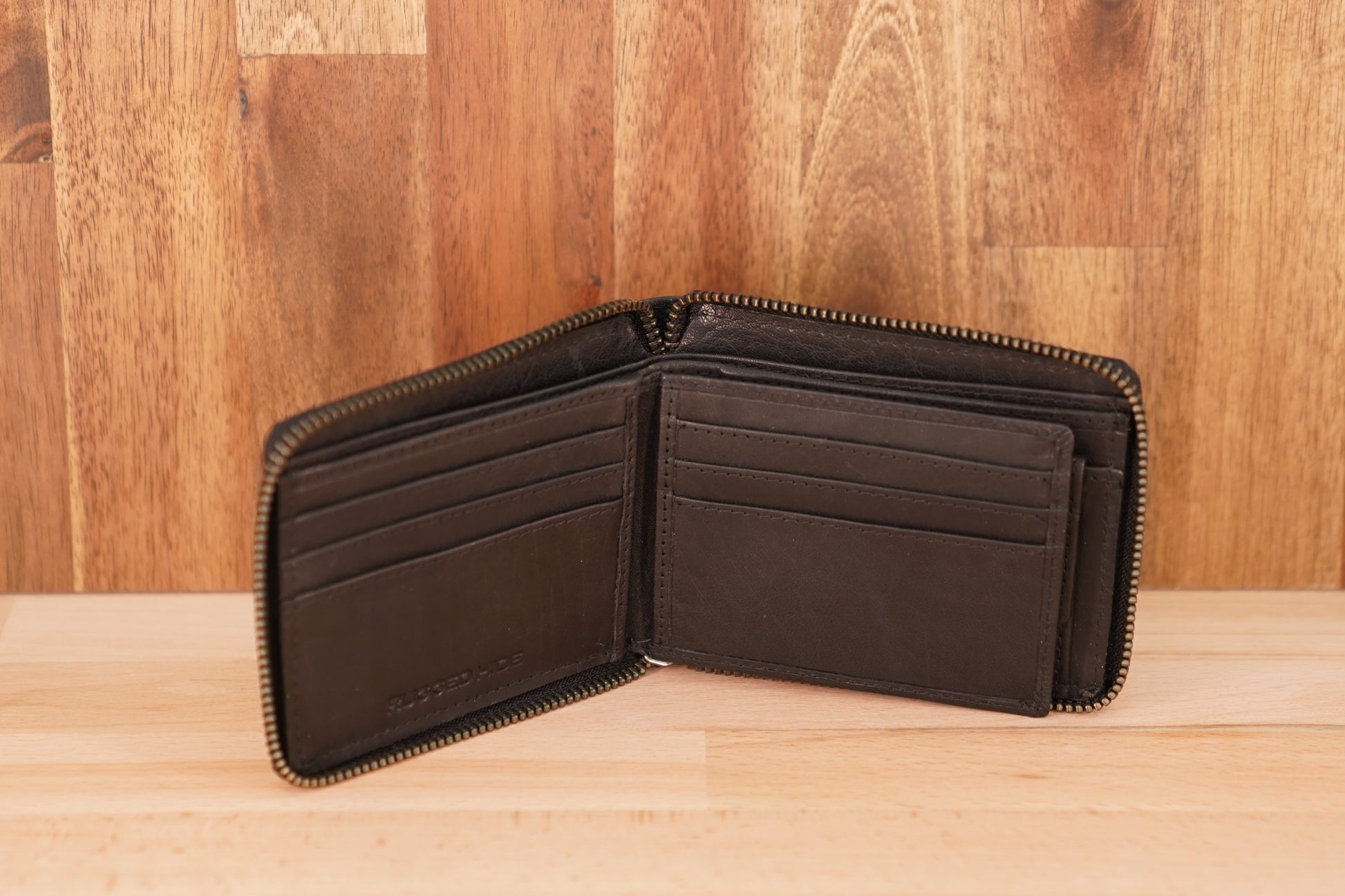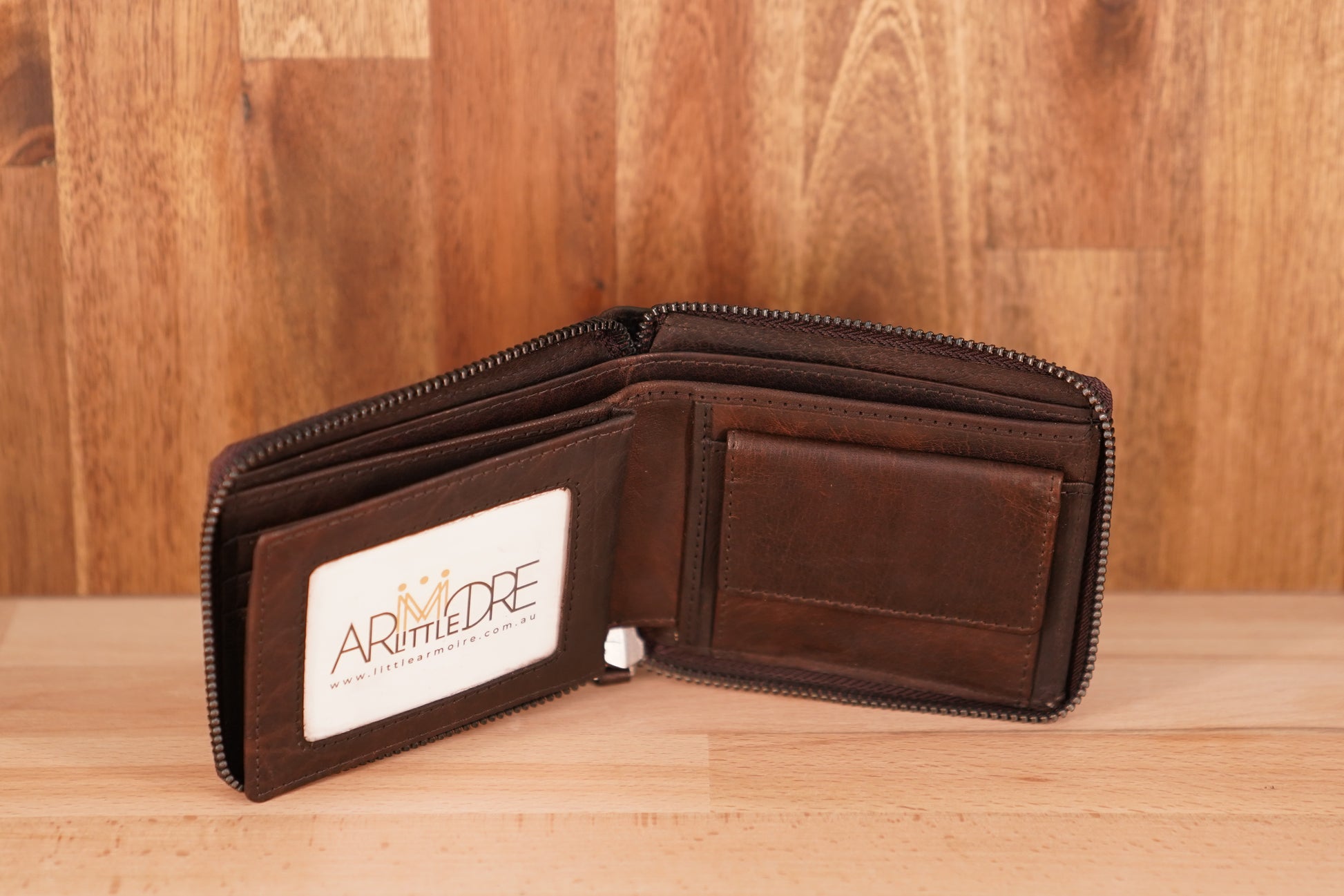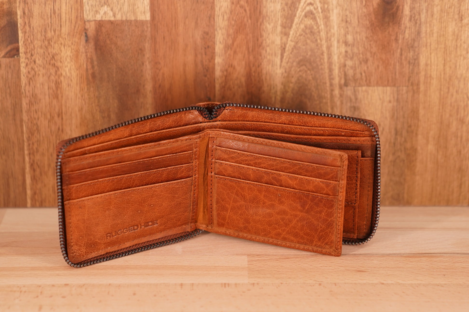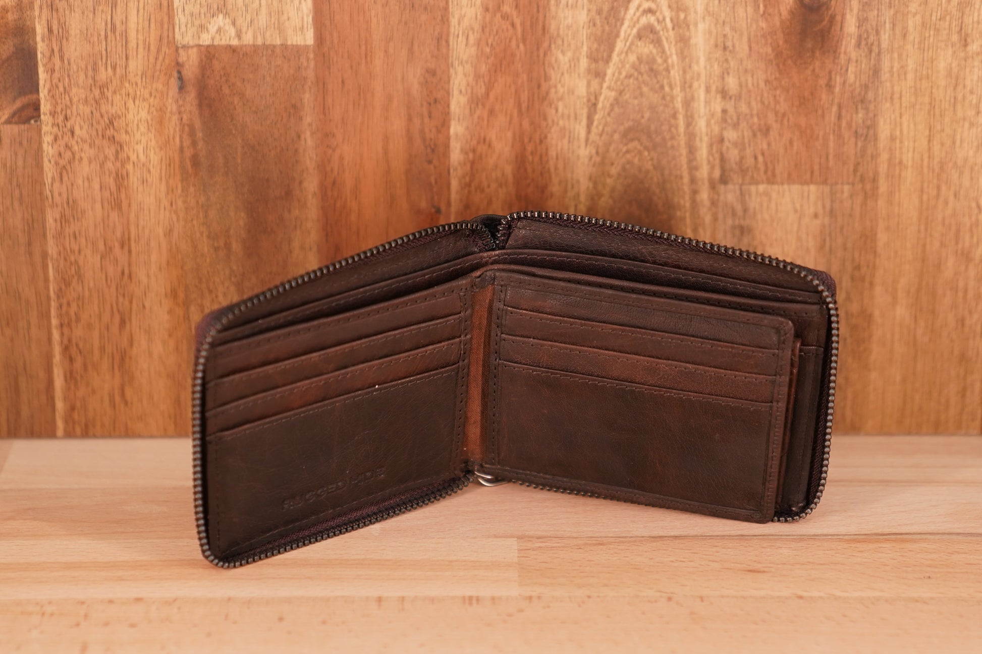 • Zip around leather wallet