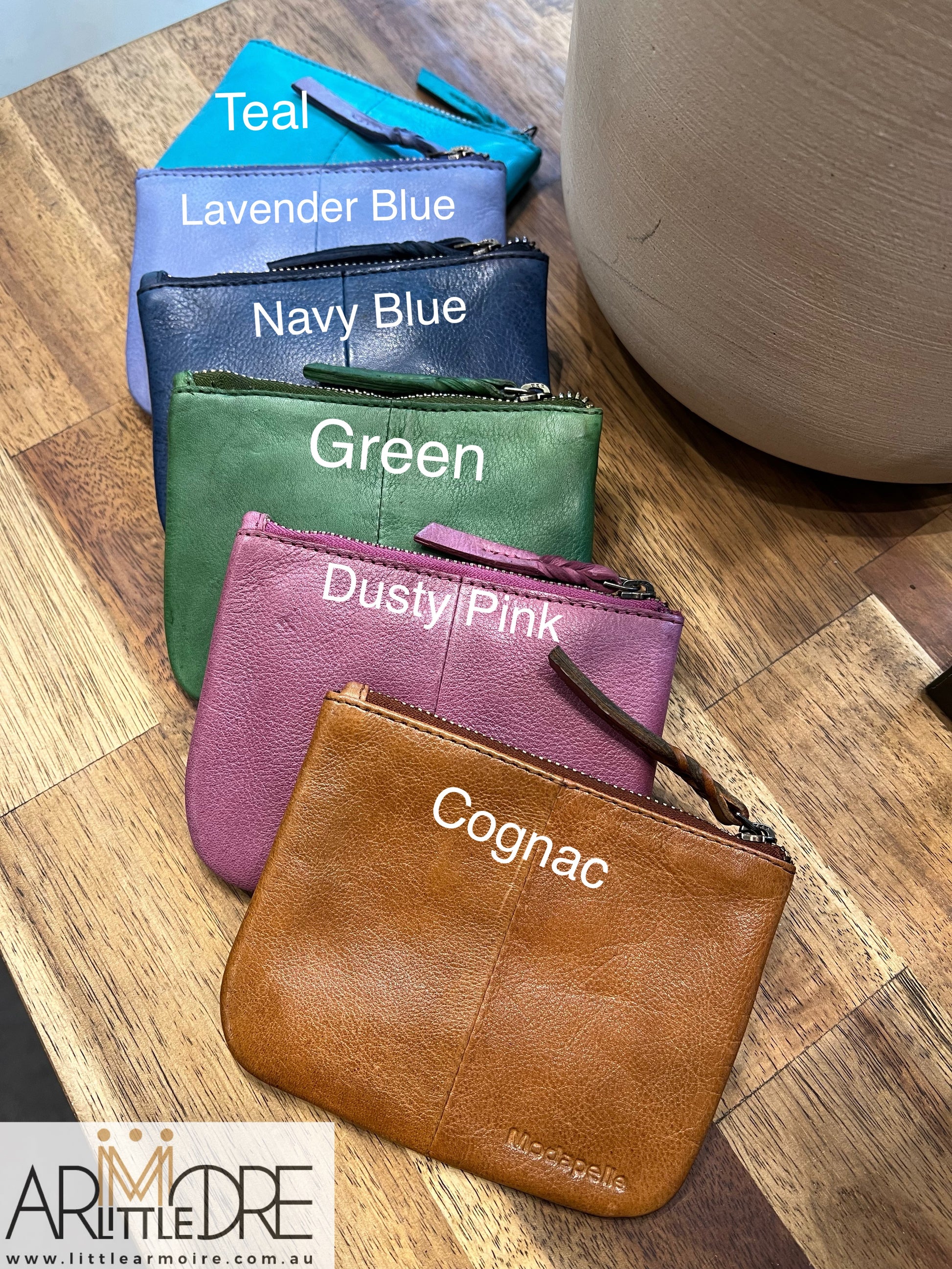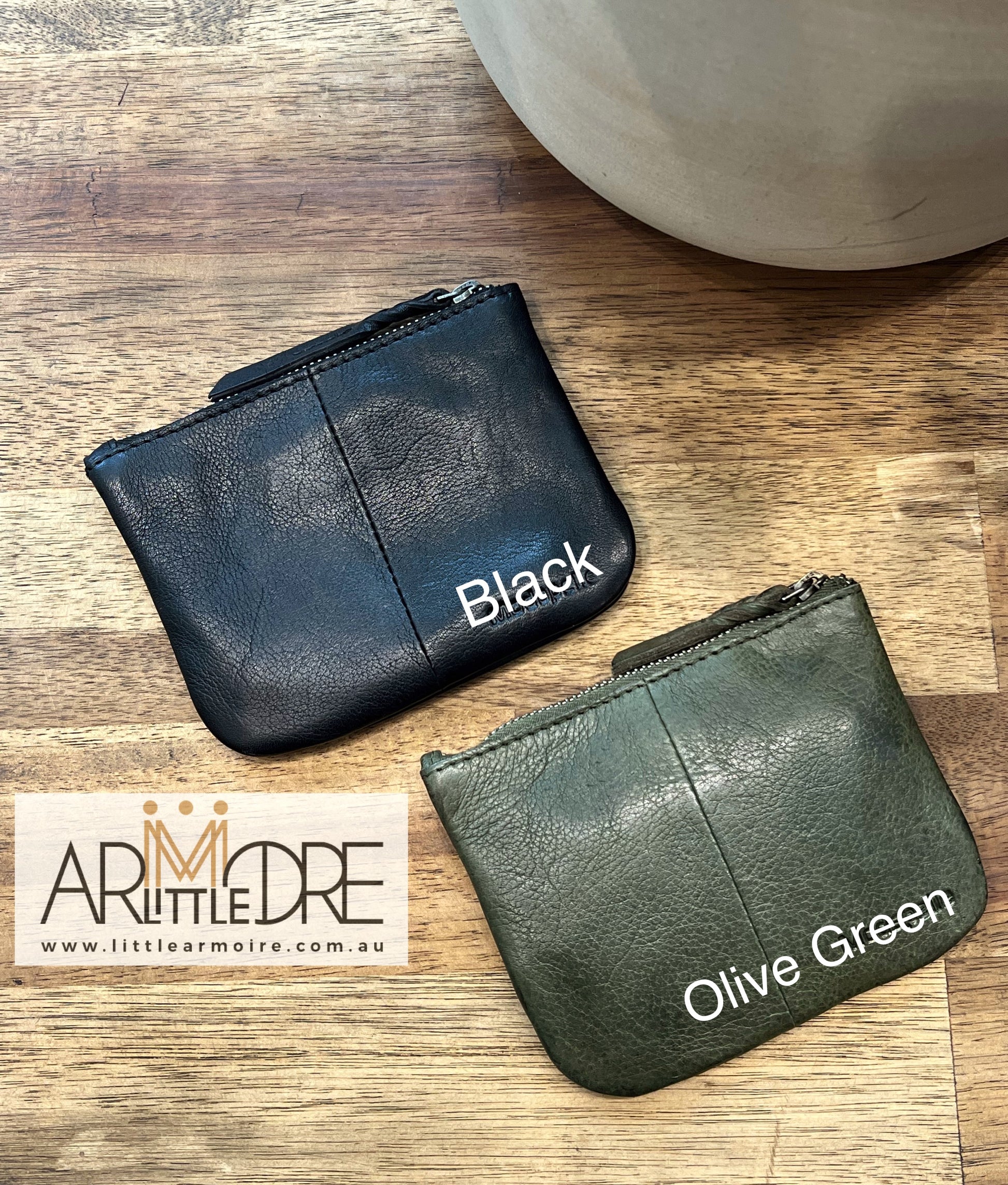 Washed Leather Coin Purse / Card Holder with one zip compartment.  Great for coin, note. Will fits standard credit card.  Compact size. Great for travel